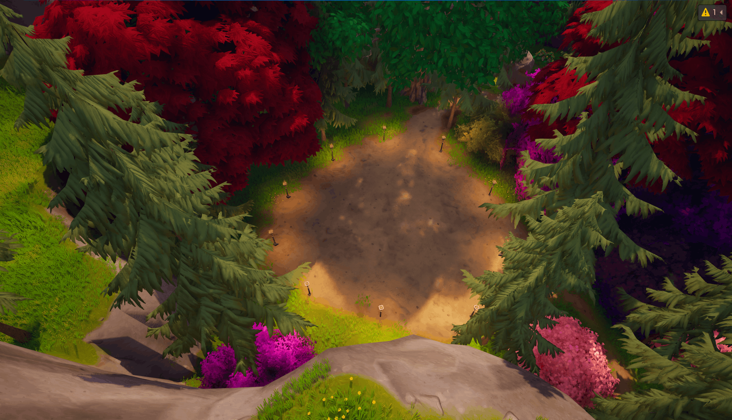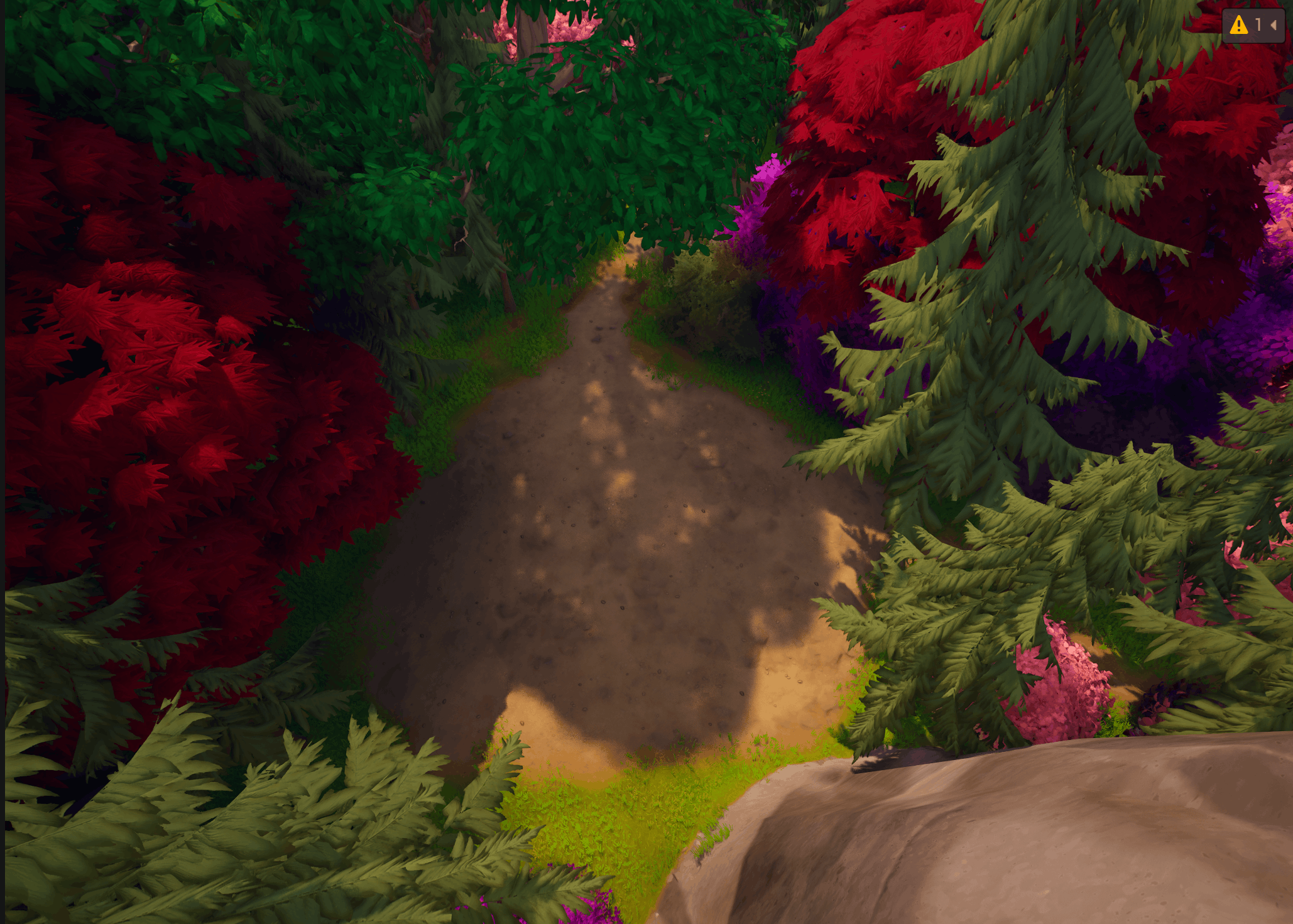 After igniting more fire volumes and adding travel time, I couldn’t get the player to turn back to go the intended path, so I ended up manipulating the landscape to have the player look down on the flower from a slight ledge, with a tree trunk leading the player to the right towards the dialogue boxes (Hidden in-game).