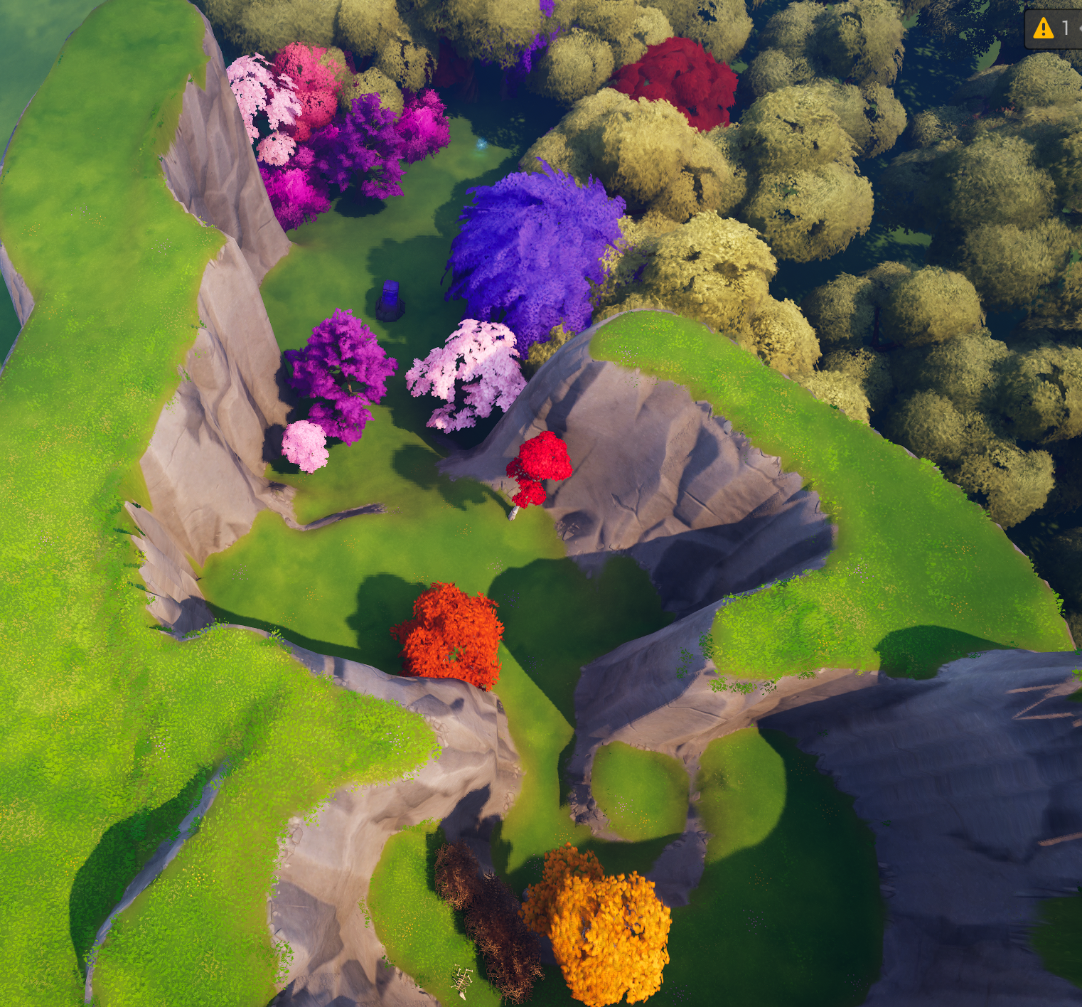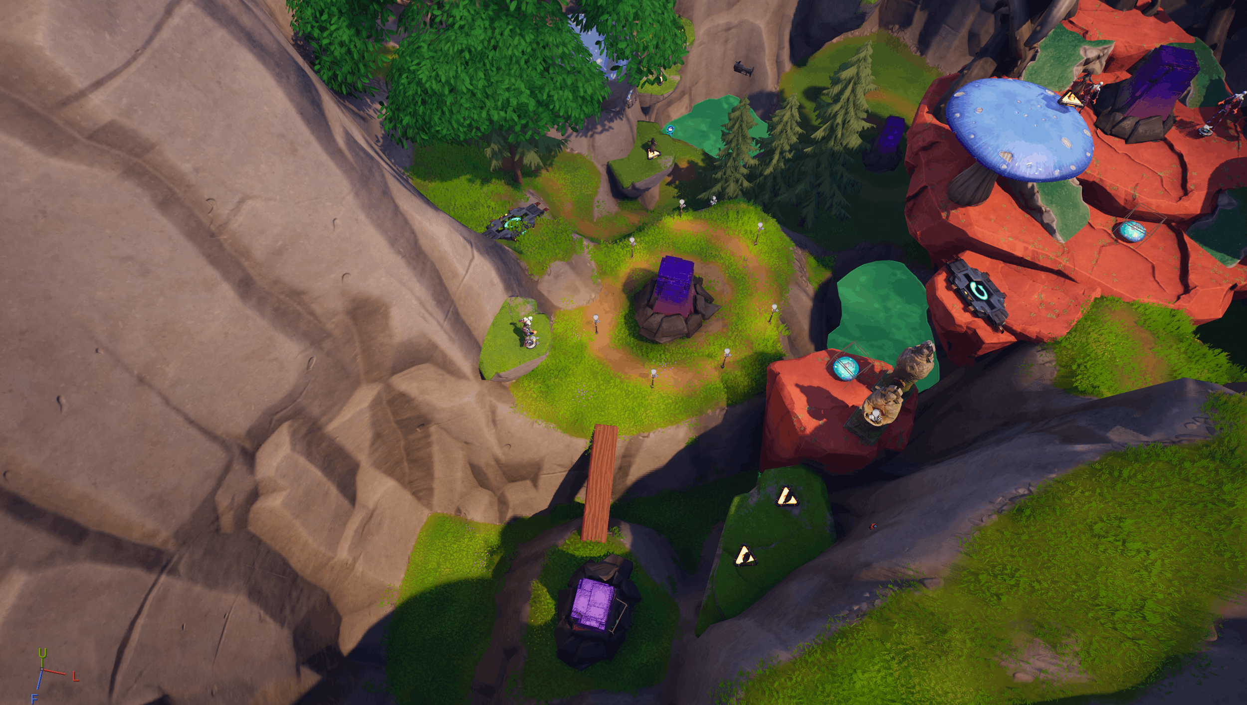 A large portion of my workflow revolved around using the landscape tool to quickly mold ground, create rough gamespace, and constrain player vision. Since I was given a list of asset packs to work within, I was able to quickly go in with finished assets to block out the space without white-boxing.